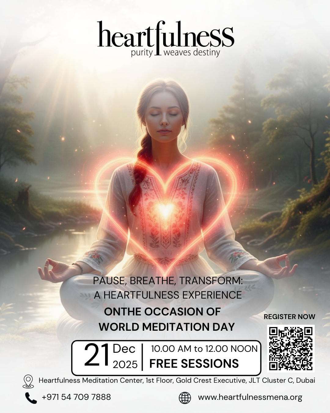 On the occasion of World Meditation Day (21st December), Heartfulness UAE warmly welcomes all willing hearts to experience the joy of meditation empowered by HEARTFULNESS. 📆 Sunday, 21st December 2025🕰️...