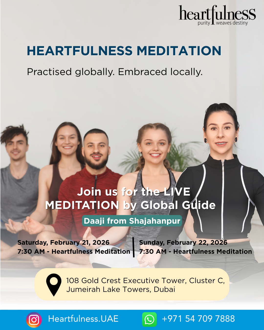 Heartfulness UAE welcomes all willing hearts, to experience the joy of Meditation. 📆 1st February, 2026 (Sunday) 🕰️ 10AM - 12PM (Pls arrive by 9:45am) 👤 Who can attend: Anyone above 15years, first timers or already Heartfulness practitioners 📍 Heartfulness Center, 1st floor, Gold Crest Executive, JLT Cluster C 📌 No FEE. Breakfast will be...