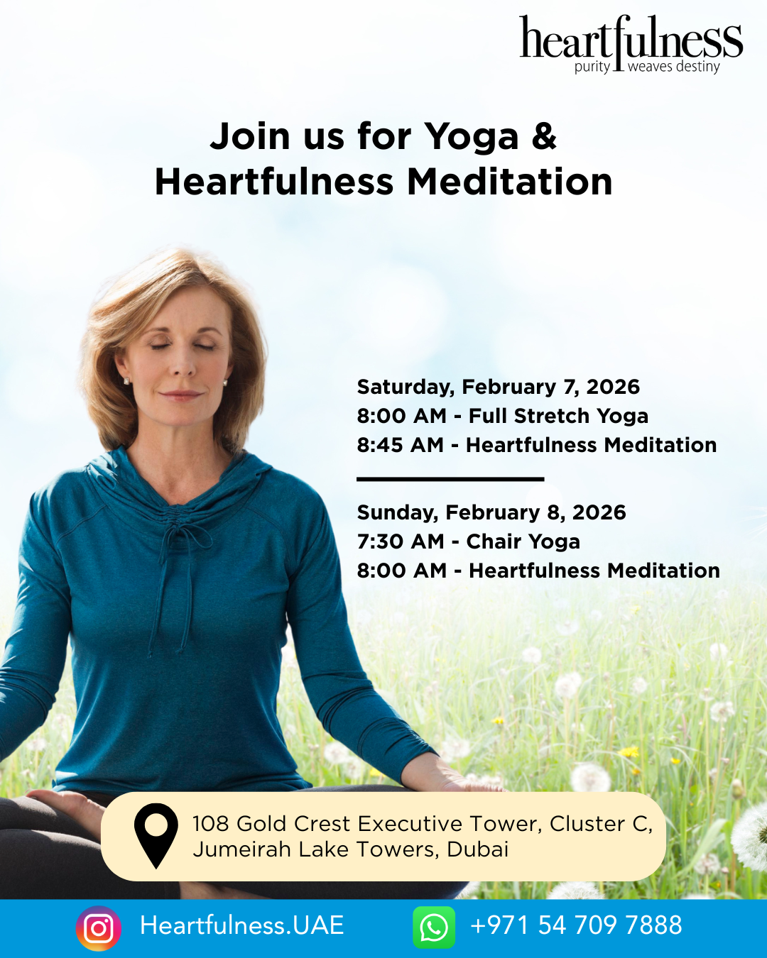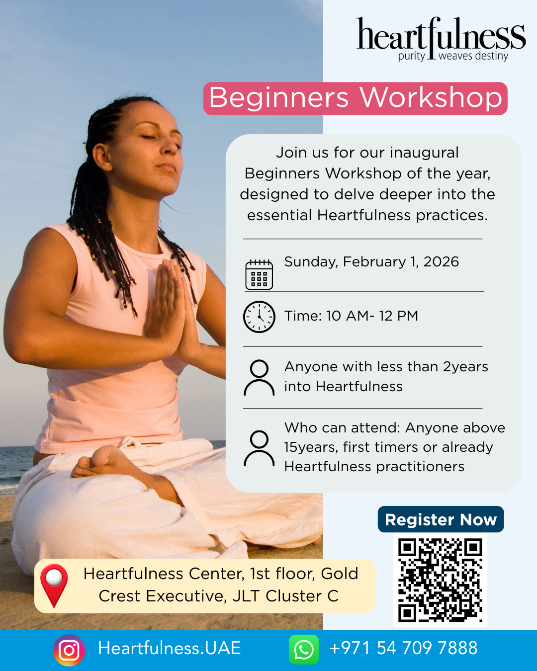 Heartfulness UAE welcomes all willing hearts, to experience the joy of Meditation. š 1st February, 2026 (Sunday) š°ļø 10AM - 12PM (Pls arrive by 9:45am) š¤ Who can attend: Anyone above 15years, first timers or already Heartfulness practitioners š Heartfulness Center, 1st floor, Gold Crest Executive, JLT Cluster C š No FEE. Breakfast will be...